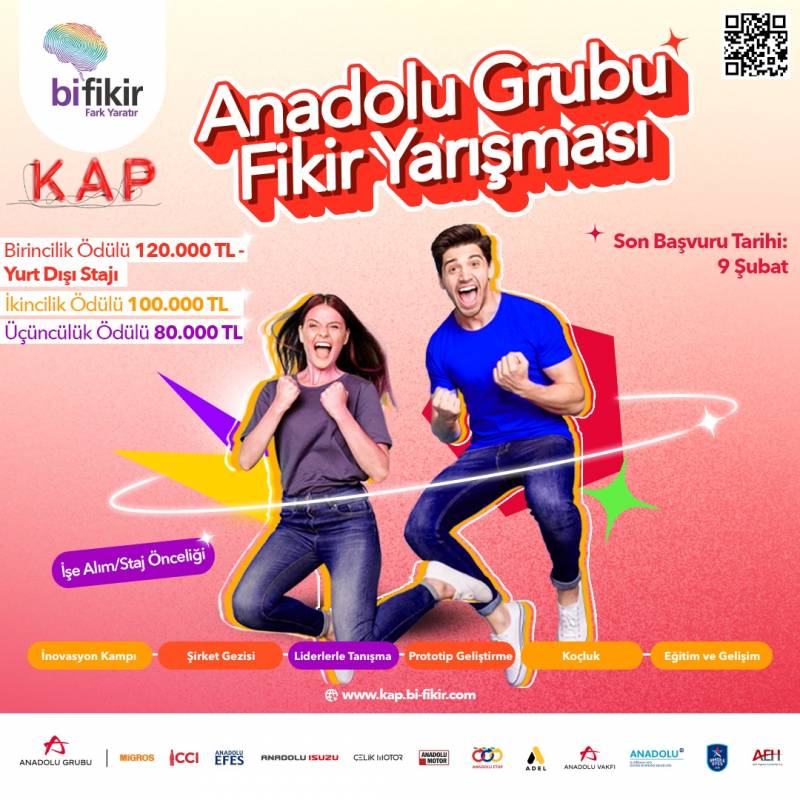 25 yaşın altındaki lisans ve yüksek lisans öğrencilerinin katılımına açık olan Bi Fikir KAP ile gençleri Anadolu Grubu'nu yakından tanıyacakları ve sektörün önde gelen isimlerinden ilham alacakları dolu dolu bir süreç bekliyor. Şimdi bi fikir kapma ve projeleri Anadolu Grubu çatısı altında hayata geçirme zamanı!