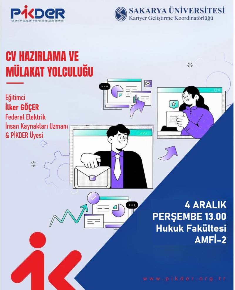 Etkinlikte etkili CV oluşturma, İnsan Kaynakları bakış açısı ile değerlendirme kriterleri ve mülakatlarda başarı sağlayacak ipuçlarına yer verilecektir.
