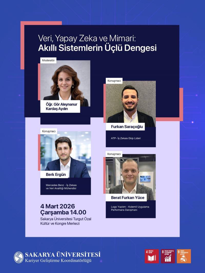 Sakarya Üniversitesi Kariyer Geliştirme Koordinatörlüğü tarafından düzenlenen bu özel etkinlikte, sektörün deneyimli isimlerinden olan mezunlarımız öğrencilerimizle buluşuyor.