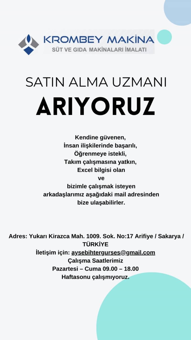 Krombey Makina'ya ait Satın Alma Uzmanı ilanı görselde sunulmaktadır.