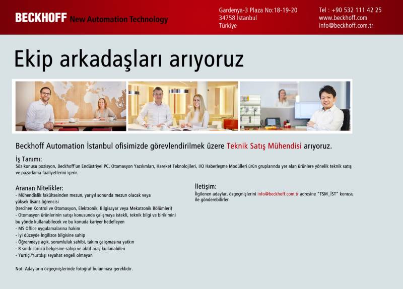 Beckhoff Otomasyon'a ait Teknik Satış Mühendisi ilanı aşağıda sunulmaktadır.